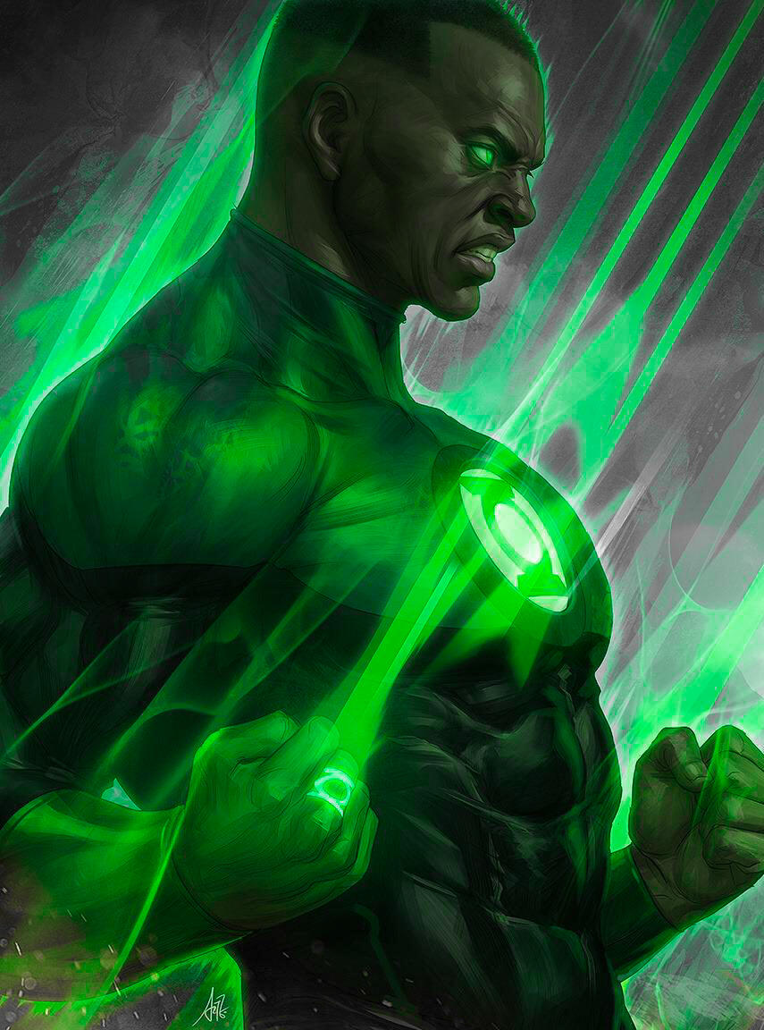 | JOHN STEWART sector 2814, leader of the green lantern corps, former ultraviolet lantern corps member, african-american |